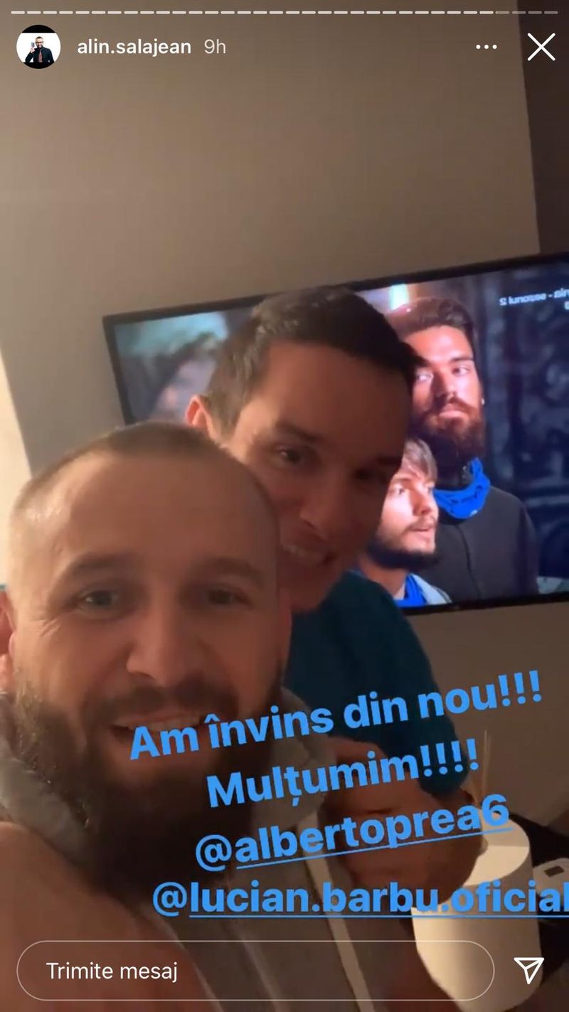 Alin Sălăjean a transmis și un mesaj important pentru Albert: ”Din nou împreună cu voi am învins. România a votat bunul simț, hai Albert”, spune Alin Sălăjean. ”Hai, Albert”, strigă și Lucian. Albert a făcut și o nominalizare bombă: Sorin.