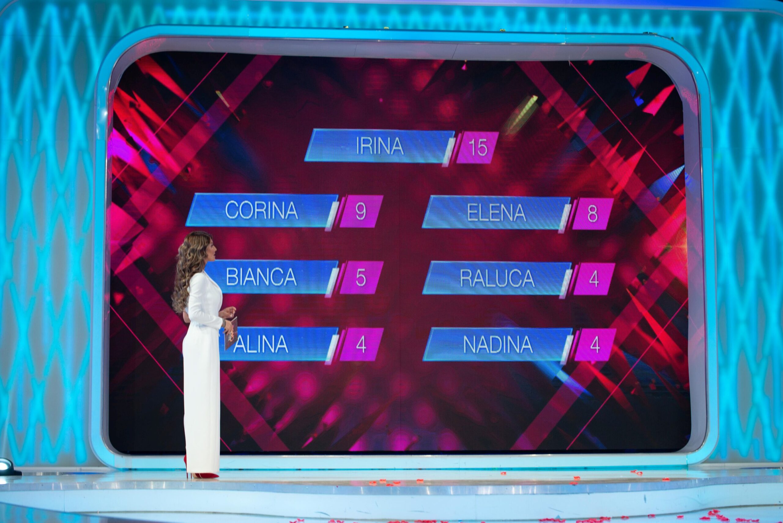 La finalul Galei “Petrecere în jurul lumii”, moderatoarea show-ului, Ilinca Vandici, prezintă clasamentul realizat în urma notelor juraților. Irina s-a clasat pe prima poziție a clasamentului, iar Raluca, Nadina și Alina s-au clasat pe ultimul loc, fiecare dintre acestea acumulând câte 4 puncte. Nadina a fost salvată de fanii săi din rândul telespectatorilor, aceștia votând-o în proporție de 41,8%, iar Alina a fost eliminată din competiția stilului, clasându-se pe ultima poziție în clasamentul publicului, totalizând 2,7% din voturi.