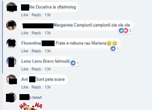 "Ai fost crima la faza asta! Alina vrea sa faca si ea parte din cei 3 muschetari.. inca putin si va avea mustata mai mare ca a baietilor", "Cu masina de tuns iarba e mai sigur", "Buna intrebare, chiar are nevoie" sau "Il ajunge pe Vladimir", au fost doar cateva din comentariile rautacioase la adresa Alinei.