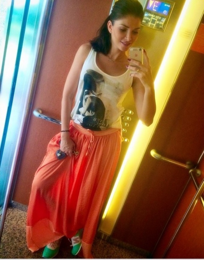 Alina Puscas si-a postat pe contul de Instagram o fotografie in care abia i se observa burtica de gravida, cu toate ca sarcina este avansata. Imbracata intr-o fusta lunga, lejera si un maiou decoltat, prezentatoarea si-a facut un selfie in care a afisat un zambet larg.