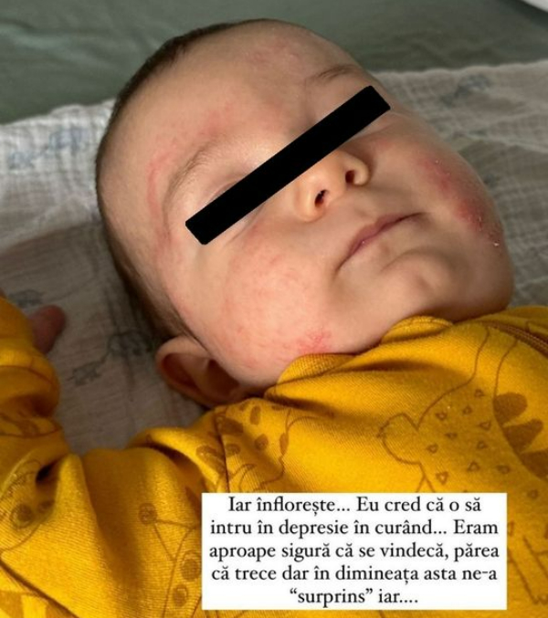 „Iar înflorește… Eu cred că o să intru în depresie în curând… Eram aproape sigură că se vindecă, părea că trece, dar în dimineața asta ne-a „surprins” iar…”, a mărturisit Emily Burghelea, pe pagina sa de Instagram, alături de o fotografie cu fața micuțului Damian.