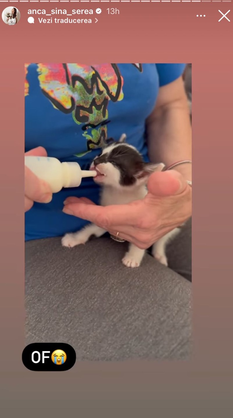 „Ce credeți că se întâmplă la noi în familie? Am găsit acest pisoi în spatele casei. Sara, de fapt, l-a găsit, și am, întrebare, noi am mai salvat un pisoi de pe stradă, nu știu ce să facem cu el, e foarte mic, săracul, amărât. Era mort de foame.”, a spus Anca Serea în mediul online.