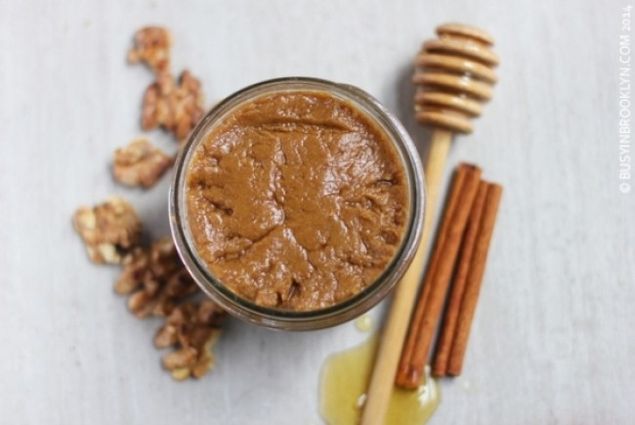 Miezul de nuca se macina si se amesteca cu mierea si cu scortisoara pana cand se omogenizeaza.