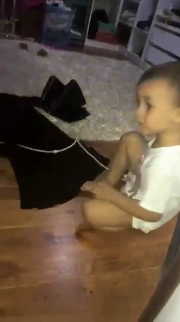 Cantareata si-a filmat fiul in timp ce se prefacea ca ii calca o rochie.