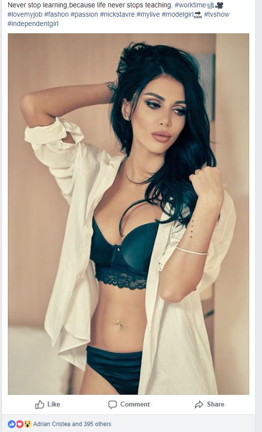 Cea mai recenta fotografie facuta publica de tanara sexy, pe contul personal de socializare, a fost apreciata chiar de catre Adrian Cristea.