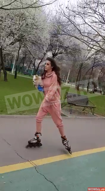 Vedeta a atras toate privirile in parc datorita tinutei sale colorate. Ea a optat pentru un trening roz care se potrivea perfect cu rolele. Pufka s-a plimbat cu ea prin tot parcul. La un moment dat, Ana-Maria s-a oprit la sa-i dea apa patrupedului insetat si, cum nu avea niciun bol sau alt suport la ea in care sa-i puna apa, i-a dat sa bea din mana.