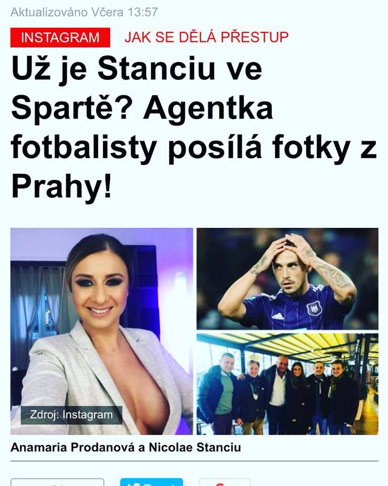 Anamaria Prodan, cum a aparut in ziarele din Cehia! Impresara face senzatie in aceste zile la Praga! Aflata in Cehia pentru a perfecta transferul lui Nicolae Stanciu la Sparta, cunoscuta impresara i-a cucerit pe ziaristii locali!