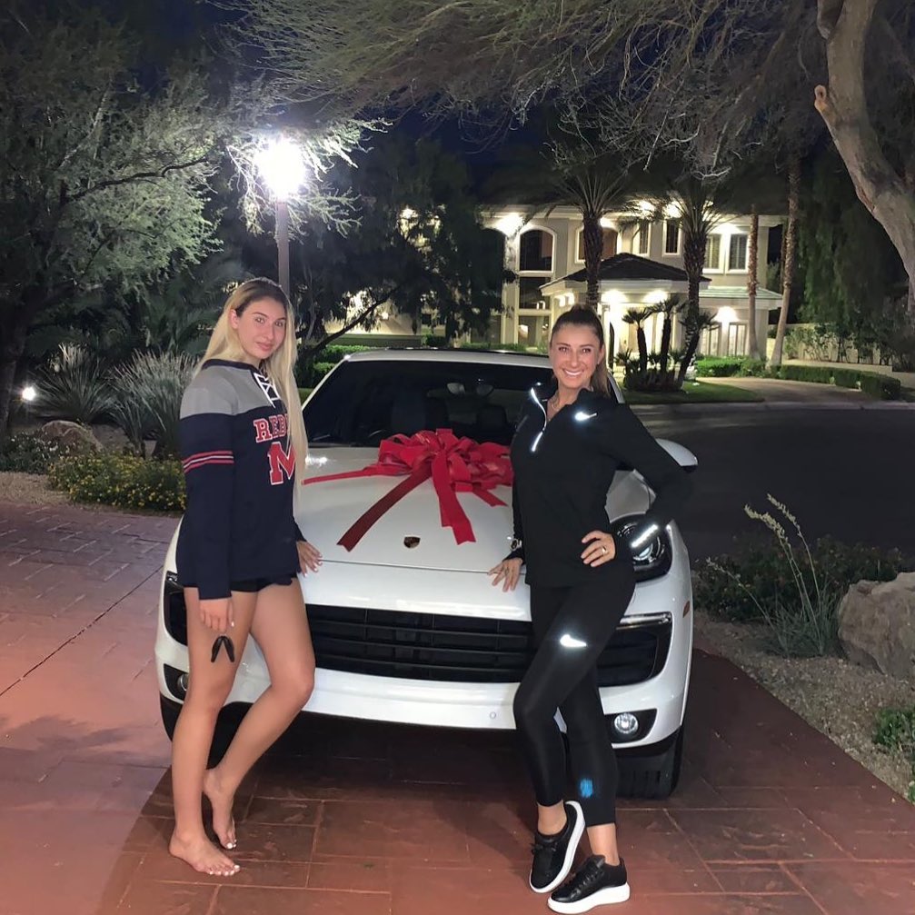 Mai mult decât atât, Anamaria Prodan a postat imaginea cu Sarah pe instagram, iar în spatele lor se poate observa bolidul de lux, alb, cu o fundă imensă roșie pe capotă.