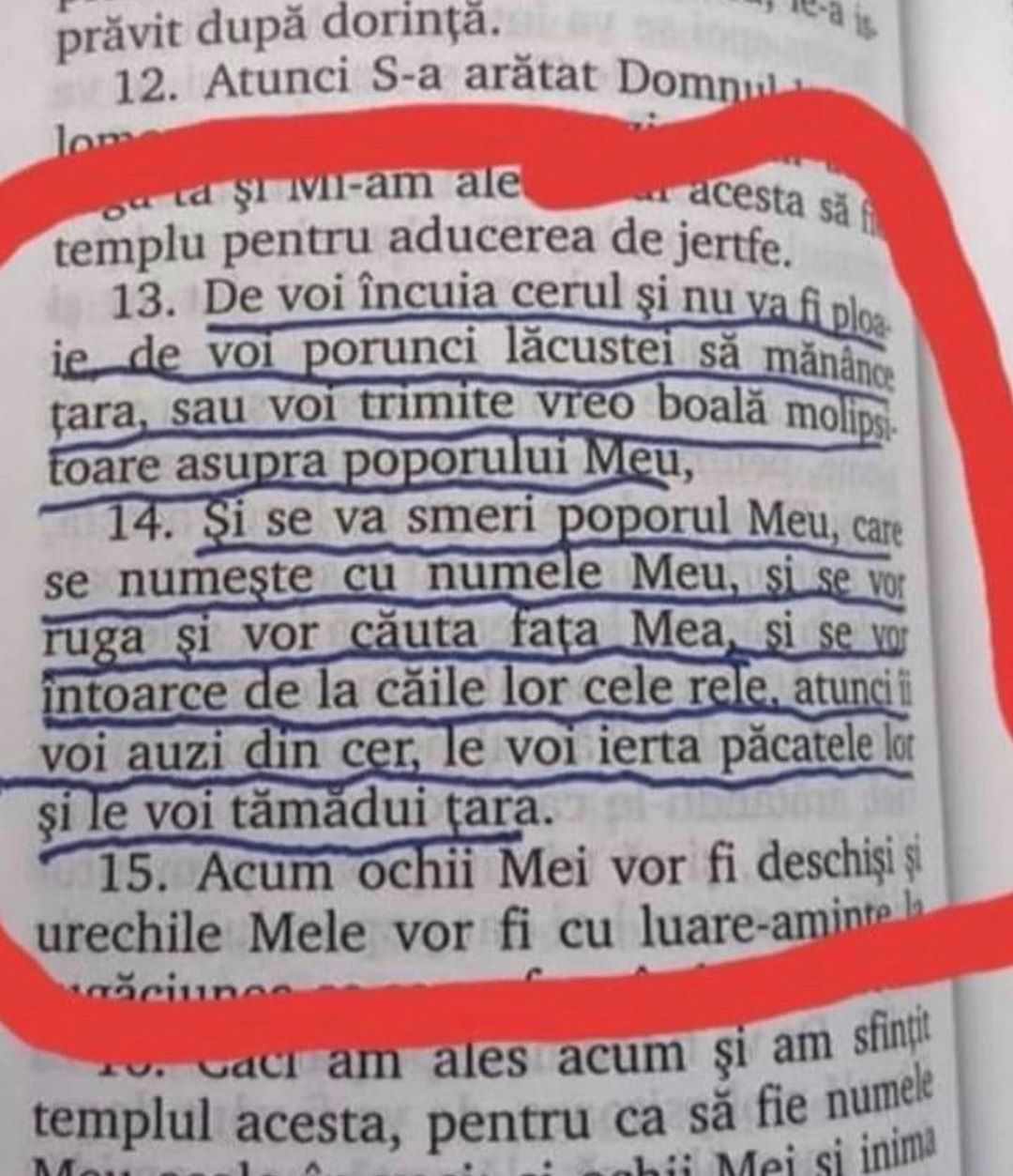 “De voi încuia cerul şi nu va fi ploaie, de voi porunci lăcustei să mănânce ţara, sau voi trimite vreo boală molipsitoare asupra poporului Meu. Şi se va smeri poporul Meu, care se numeşte cu numele Meu, şi se vor ruga şi vor căuta faţa Mea, şi se vor întoarce de la căile lor cele rele, atunci îi voi auzi din cer, le voi ierta păcatele lor și le voi tămădui viața”, sunt cuvintele din Biblie care au impresionat-o pe Anamaria Prodan.