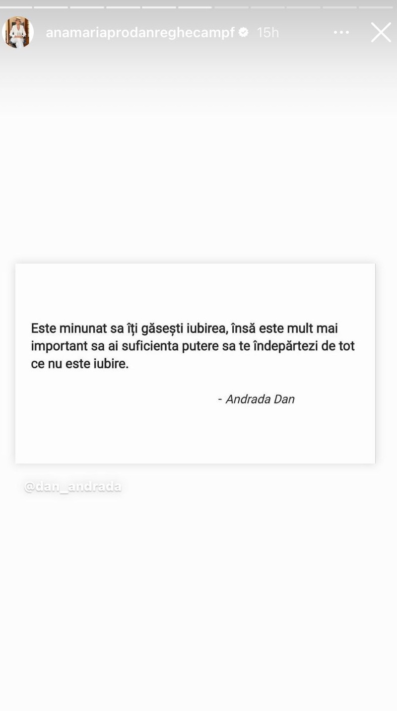 „Este minunat să îți găsești iubirea, însă este mult mai important e să ai suficientă putere să de îndepărtezi de tot ce nu este iubire”, a fost mesajul pe care Anamaria Prodan l-a postat în mediul online, la scurtă vreme după ce a recunoscut că în viața ei există un nou bărbat.
