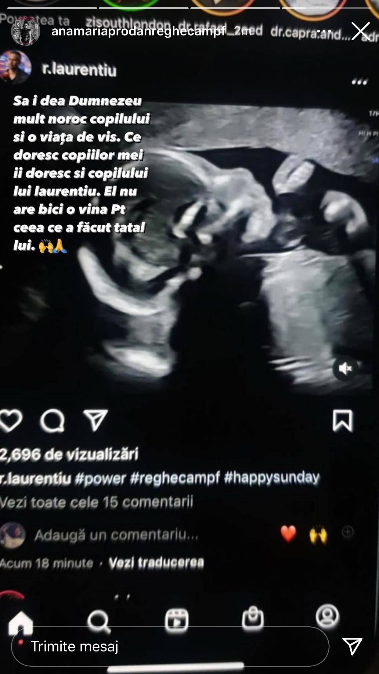 Anamaria Prodan a avut primele reacții, după ce Laurențiu Reghecampf a postat prima imagine cu ecografia copilului său, ce urmează să vină pe lume. Sexy-impresara a avut o reacție total neașteptată, după ce fostul ei partener de viață a confirmat faptul că va fi tătic, din nou. Vedeta nu a ezitat să spună ce crede, ca de fiecare dată. Anamaria Prodan a ținut să-i ureze noroc copilului și spune că el nu are nicio vină pentru ceea ce a făcut tatăl lui. Mai mult, vedeta spune că îi dorește tot ce vrea și pentru copiii ei, deci toate cele bune.
