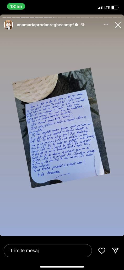 A ta, Anamaria”, este scrisoarea pe care Anamaria Prodan i-a dedicat-o mamei sale.