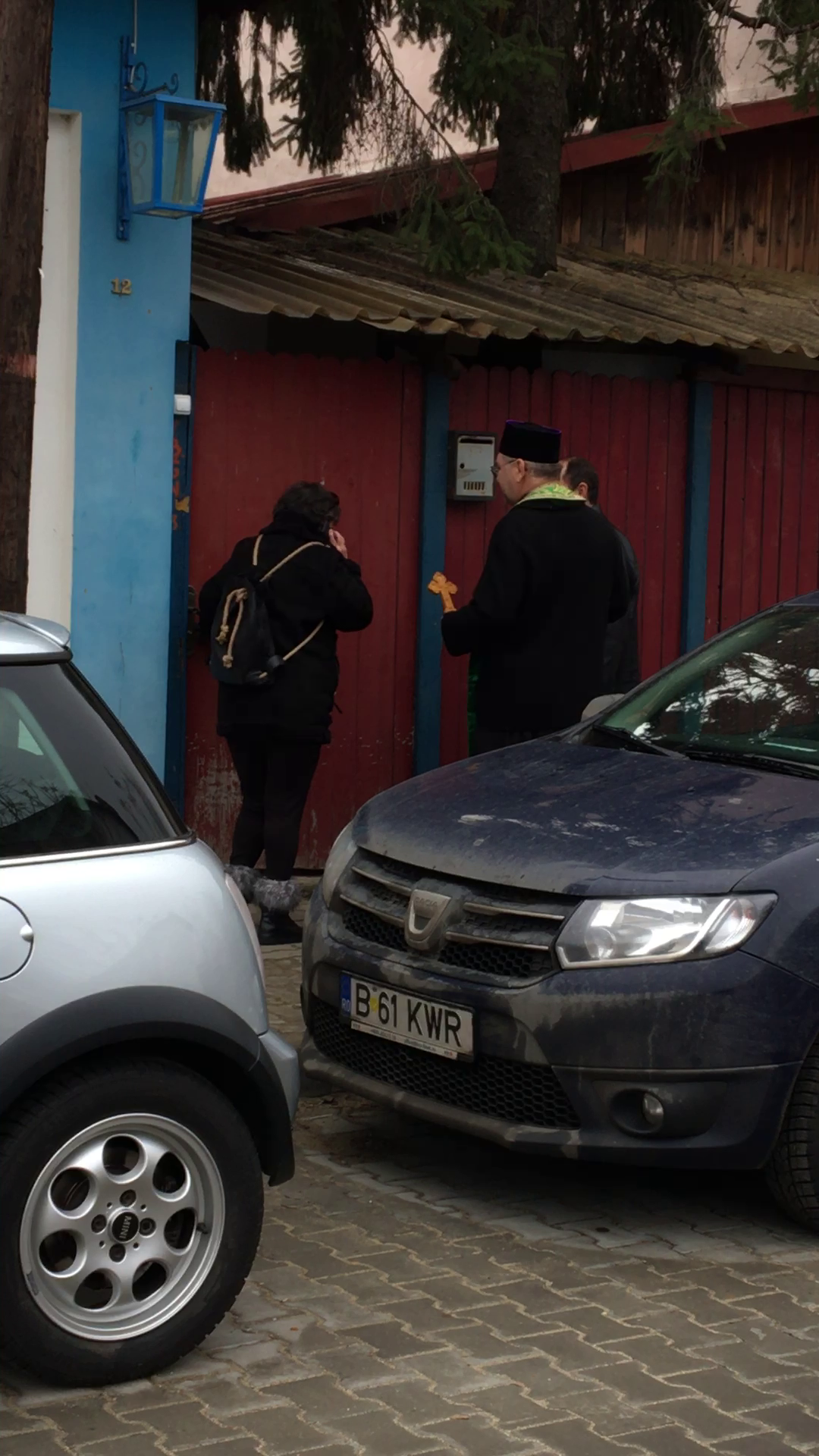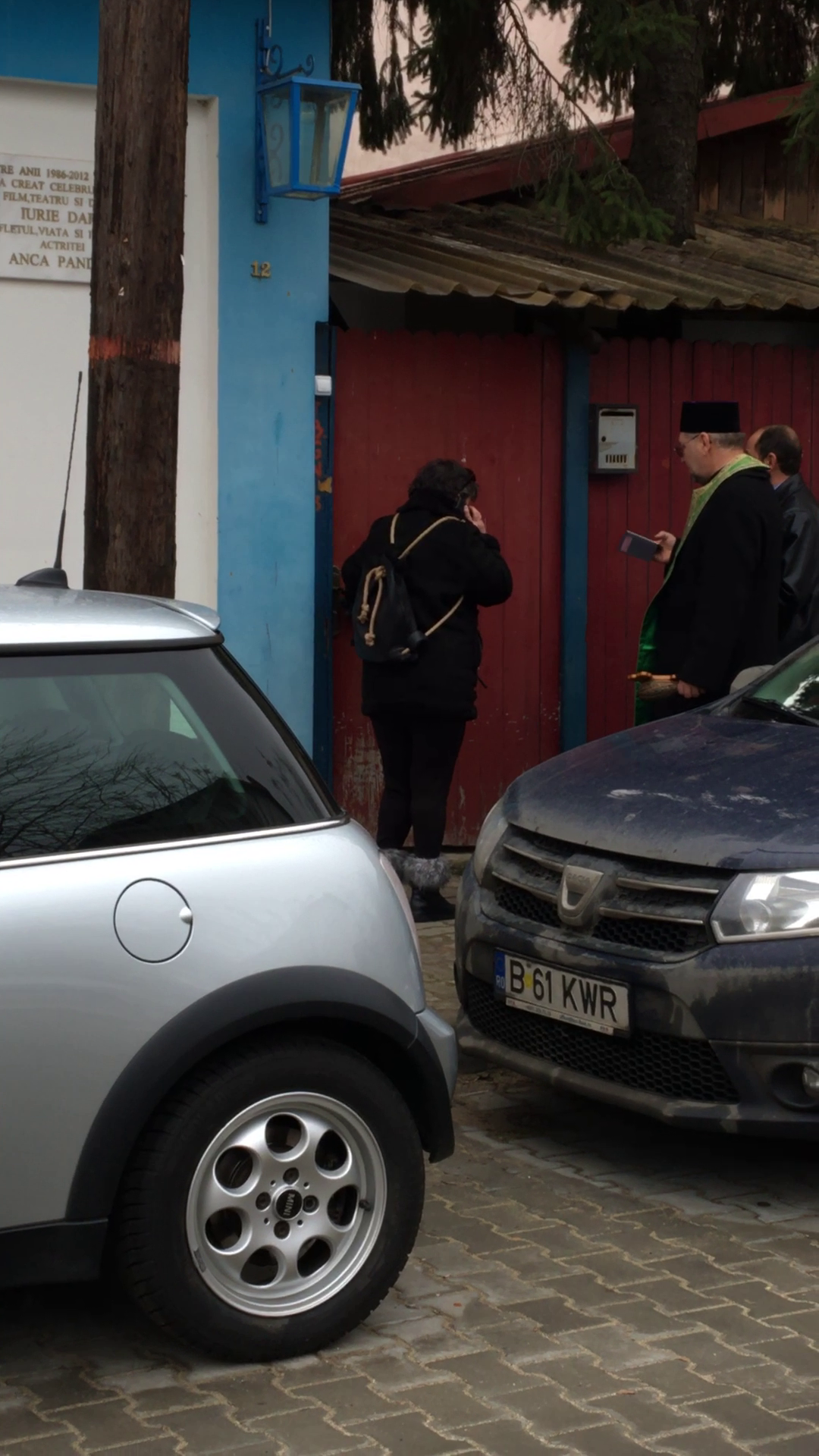 Jumatatea regretatului Iurie Darie l-a invitat pe preot in casa si, in mijlocul strazii, a multumit Divinitatii ca nu a ratat ritualul crestinesc al inceputului de an." Ce bine ca v-am prins, parinte. Haideti, haideti in casa", a spus femeia.