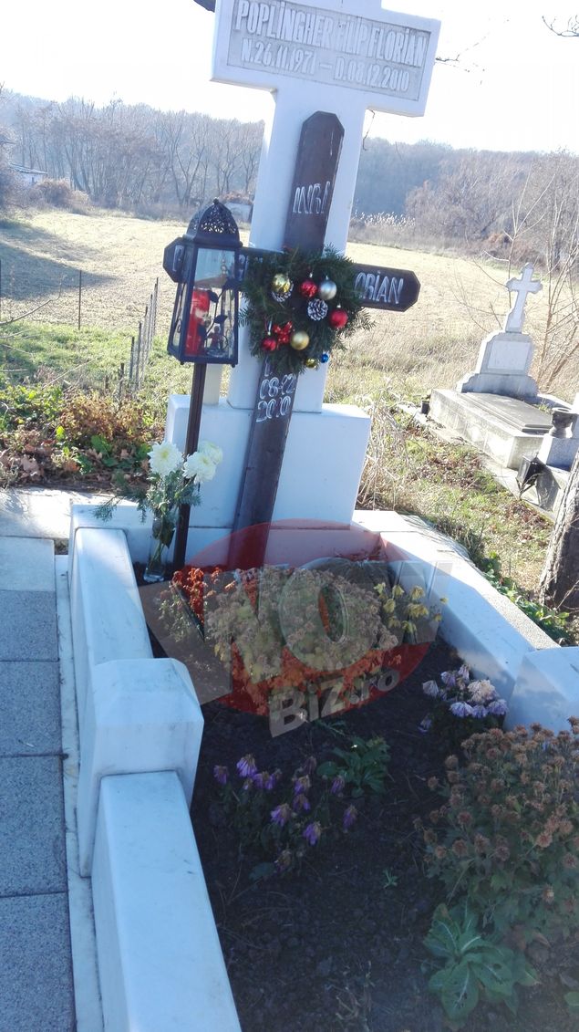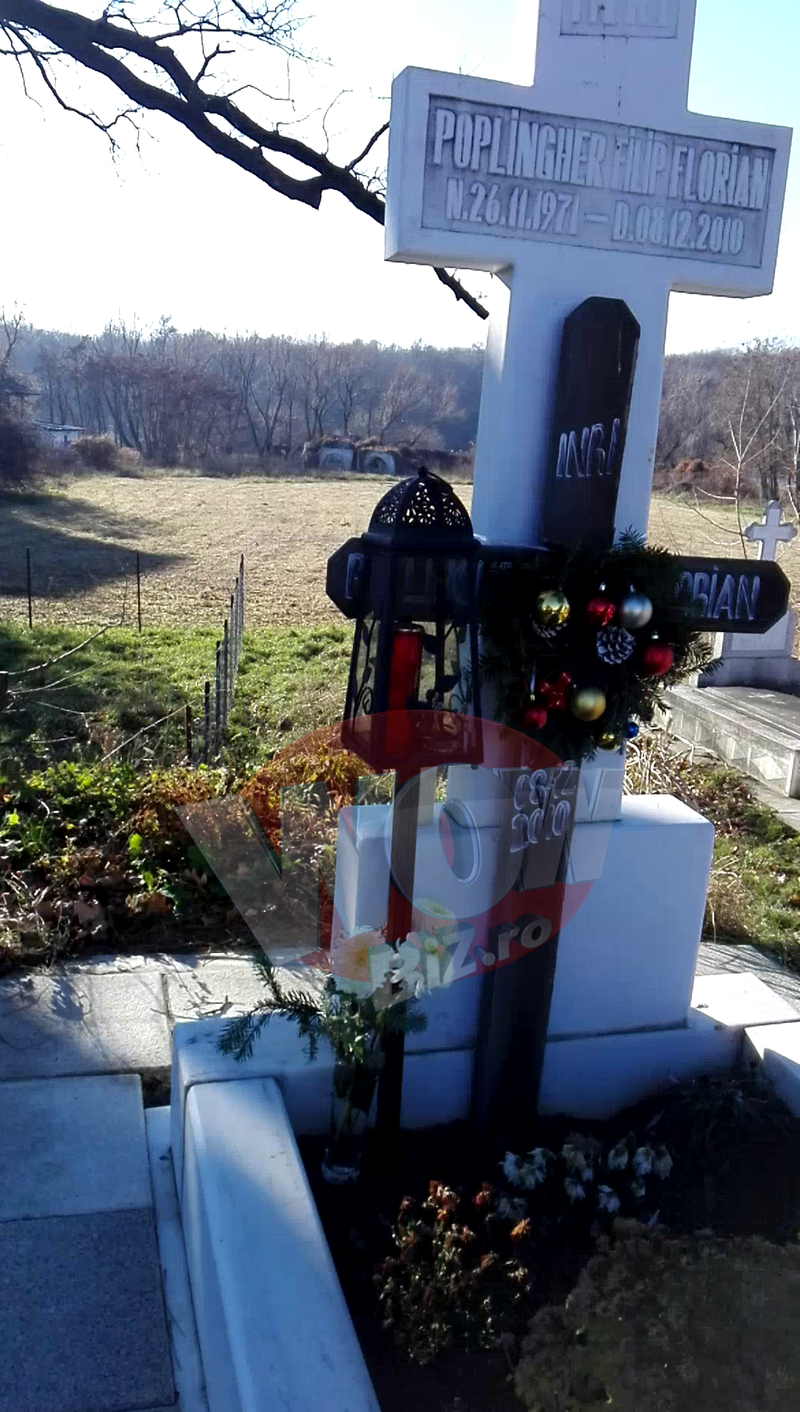 Filip Poplingher este inmormantat in cimitirul Cernica si are unul din cele mai ingrijite locul de veci. Desi au trecut 6 ani de la nefericitul moment, vedeta tv, impreuna cu cei doi copii, dar si cu mama ei, merg aproape saptamanal la mormant. Ei pun flori, il ingrijesc si aprind lumanari. Acum, ca se apropie Craciunul, vedeta tv si cei doi copii i-au impodobit mormantul lui Poplingher. Astfel, pe cruce, acestia i-au pus o coronita din brad impodobita cu globuri colorate, iar langa lumanari i-au pus doi ingerasi sclipitori.