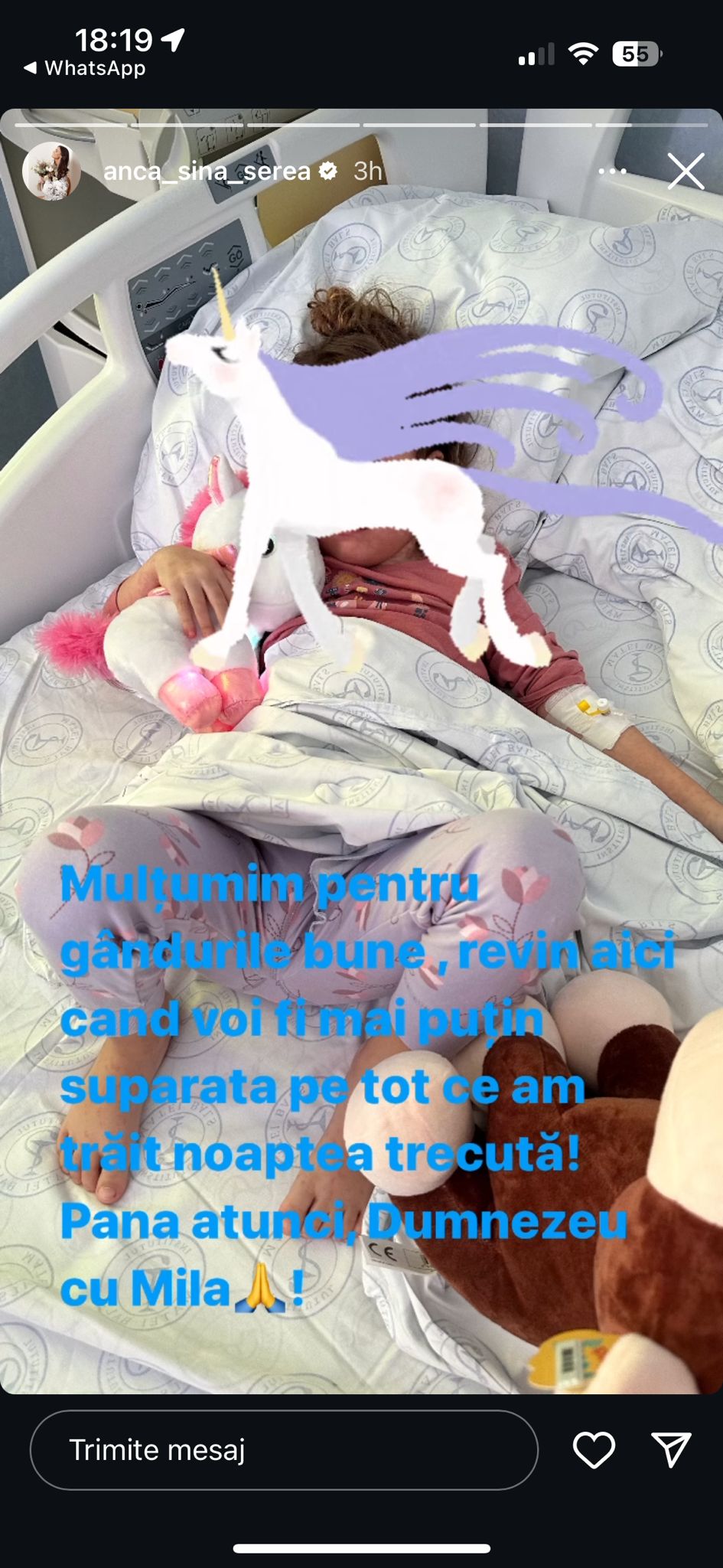 În urmă cu câteva zile, Anca Serea anunța pe Instagram că unul dintre copii ei se confruntă cu rujeolă și starea lui de sănătate pare să se complice pe zi ce trece, astfel că seara trecută bruneta a ajuns la Urgențe. Soția lui Adi Sînă s-a speriat foarte tare când a văzut că băiețelul ei nu se simte bine, astfel că a plecat în toiul nopții la spital.