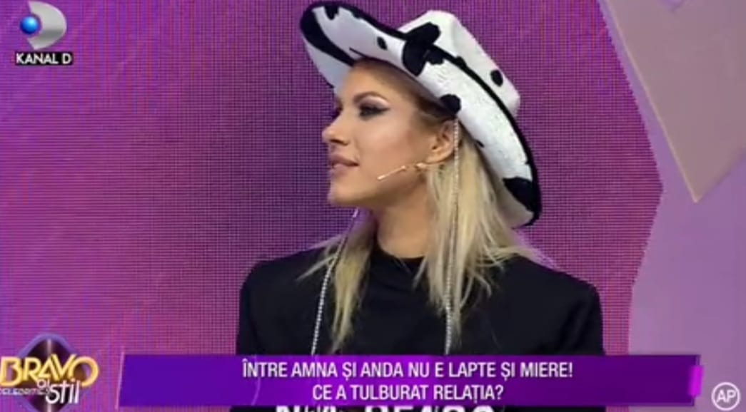 Anda Adam: -De fapt, Amna a fost cea dubioasă, a jucat-o pe invers, mi-a dat frumos așa, a țipat la mine, să mă simt vinovată și după aia a venit prin cabină: ‘Știți, eu azi am avut o lansare, am lansat piesă nouă’. Îți dai seama, eu m-am simțit cu musca pe căciulă.”, a fost discuția sarcastică a celor două vedete, în platoul „Bravo, ai stil! Celebrities”.
