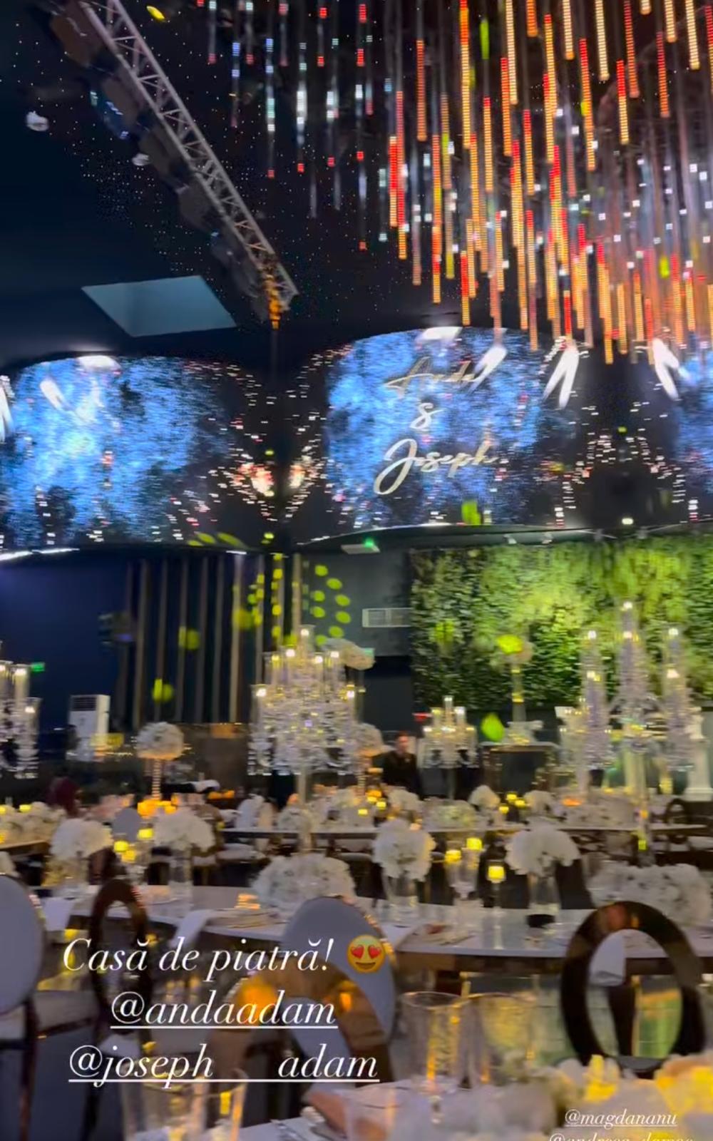 Anda și Joseph Adam sunt în culmea fericirii. Cei doi și-au unit astăzi destinele în fața lui Dumnezeu, iar acum sărbătoresc alături de prieteni și familie într-un local de vis. Totul a fost gândit în cel mai mic detaliu, iar decorul este unul de vis. Nu mai încape îndoială faptul artista și soțul său au întrecut orice așteptări.