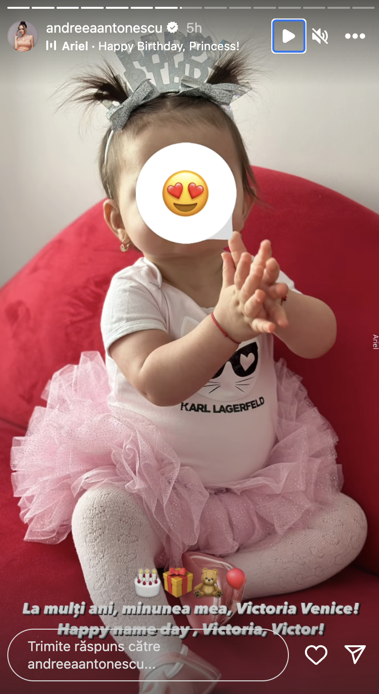 „La mulți ani, minunea mea, Victoria Venice! Happy name day, Victoria, Victor”, a scris Andreea Antonescu în mediul online.
