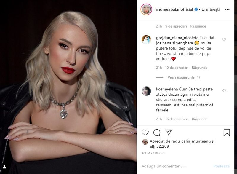 "Oamenii care un un scop precis, ambiție și viziune, nu au timp de dramă. Ei investesc energia în creativitate și se concentreaza pe trăirea unei vieți pozitive", a scris Andreea Bălan.