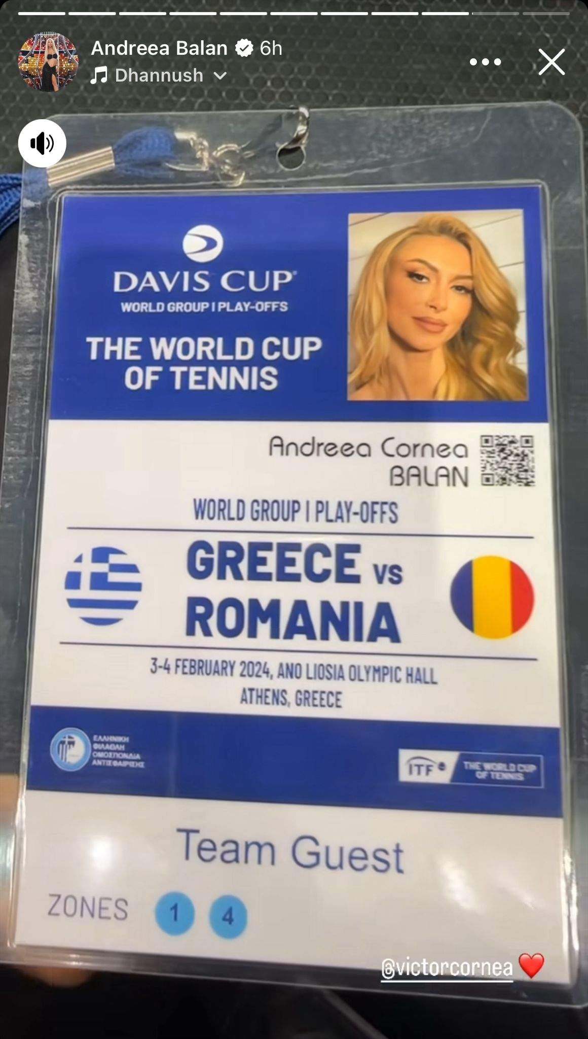 Ca de fiecare dată, artista i-a fost și acum alături la antrenamentele pentru meciul României din Cupa Davis, moment în care, pentru a intra pe teren a primit o legitimație, care a stârnit vâlvă în online, acolo unde chiar ea a făcut totul public.