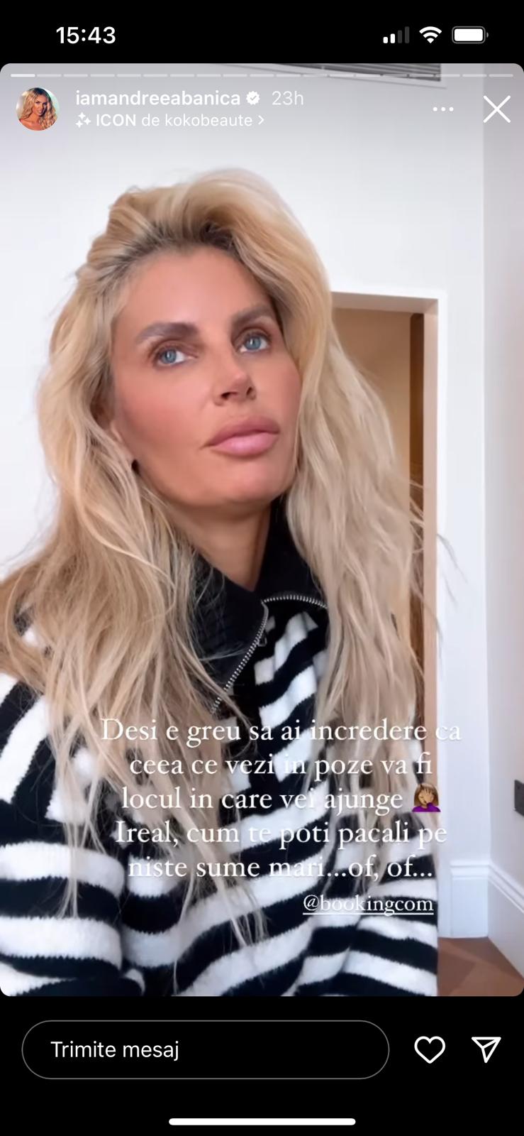 Andreea Bănică, dezamăgită de camera de hotel