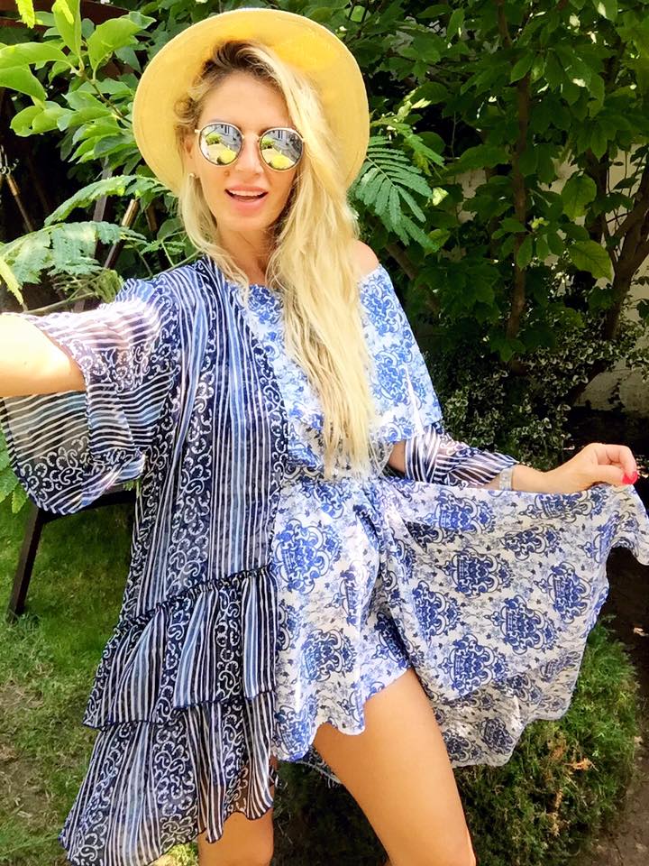 Andreea Banica e din nou insarcinata. Cu toate ca are peste 30 de ani, frumoasa blondina nu s-a ingrasat mult in primele luni si e intr-o forma de zile mari. Imbracata intr-o camasa albastra, cu mana senzual asezata in zona intima, Andreea Banica i-a provocat pe prietenii virtuali care nu s-au putut abtine de la intrebarile indiscrete.
