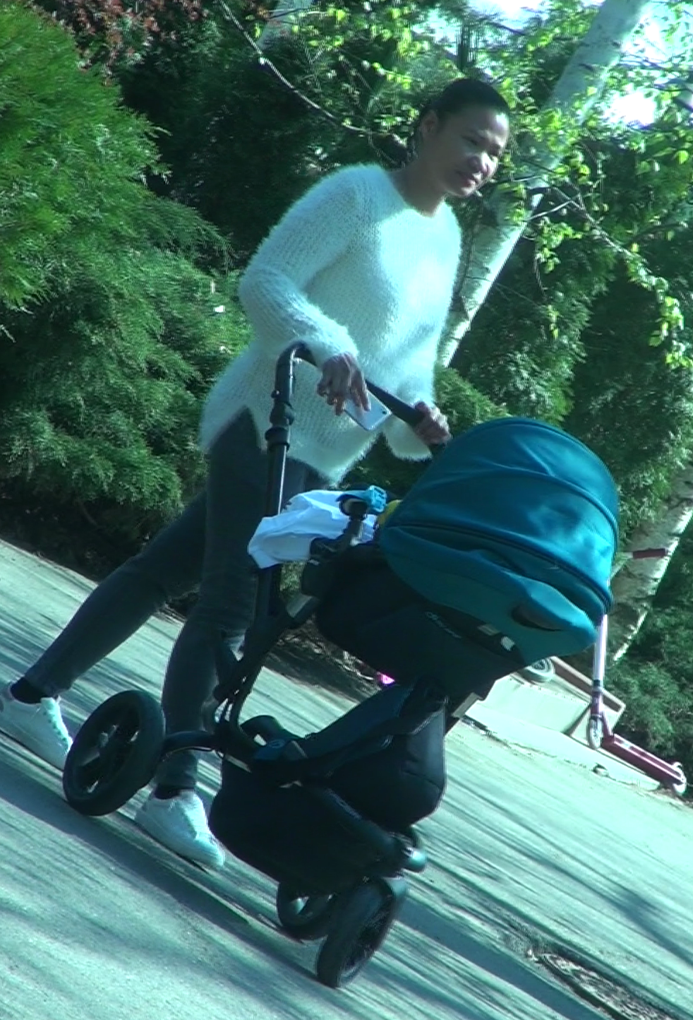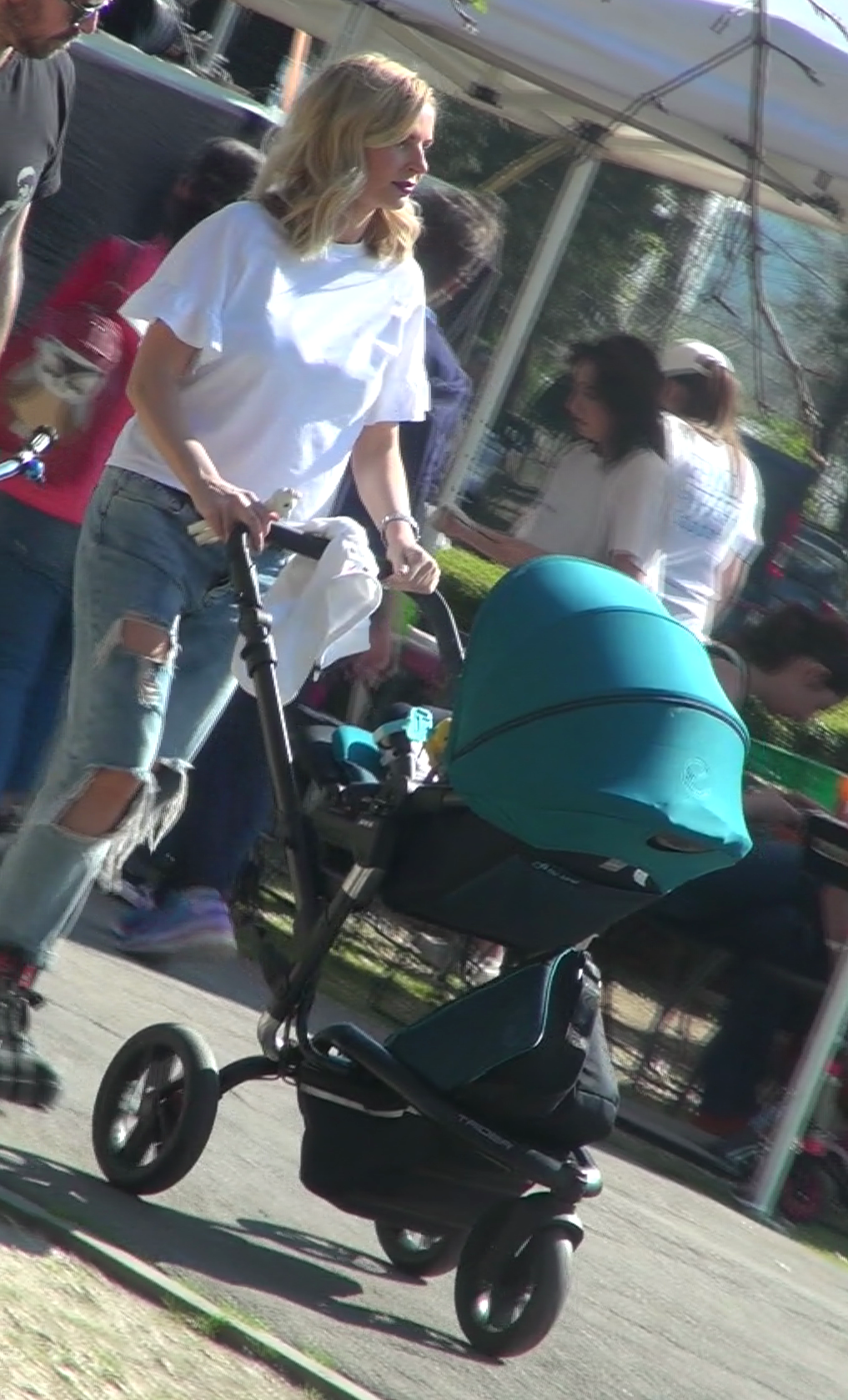 Desi bona micutului era la datorie, solista nu a putut sa stea departe de micut si, intre doua imbucaturi, a impins caruciorul prin parc, in apropierea localului. In tot acest timp, Lucian Mitrea, foarte vesel, a rezolvat telefonic afaceri care nu mai sufereau amanare.