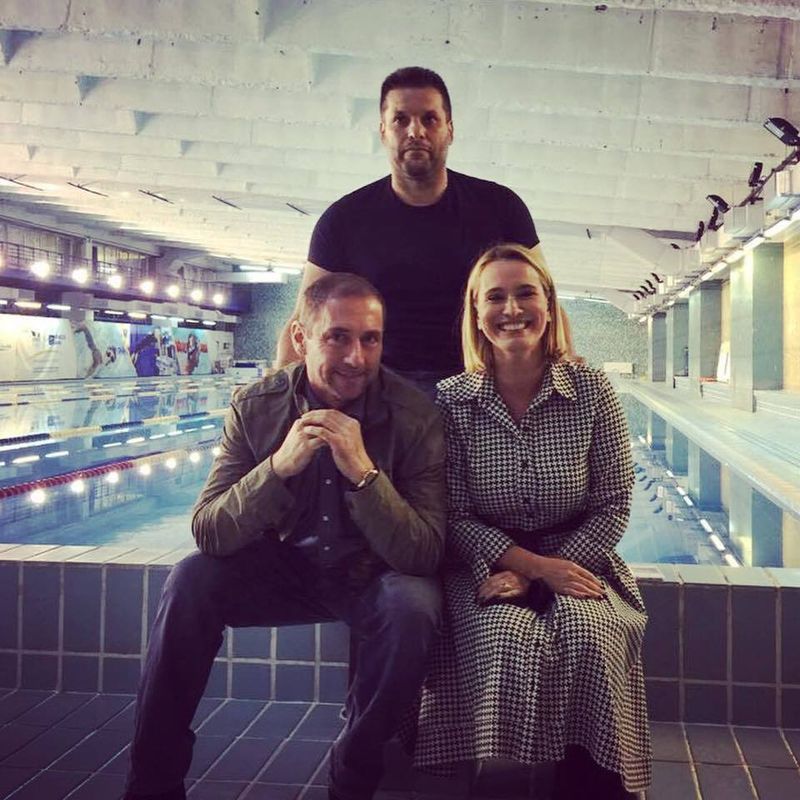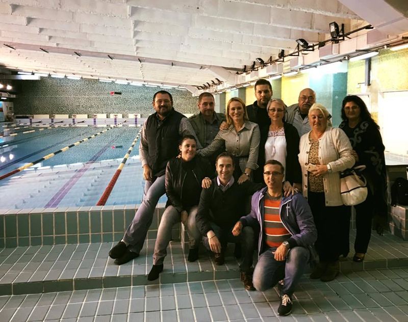”Hai că ne-am întâlnit şi cu Dom’ Profesor:) ! Profesorul nostru de înot, Ioan Marusceac( zis Johnny) care a reuşit să plece în America pe vremea lui Ceauşescu şi ne-a lăsat cu un mare dor de el. Un dor pe care numai dascălii cu har îl pot sădi în inimile elevilor. Acum, după 35 de ani, i-am povestit cât de mult l-am regretat, l-am aşteptat şi l-am amintit în discuţiile noastre de copii care de azi pe mâine am fost anunţaţi că trecem la un alt antrenor. Fără nicio explicaţie. Păi cum să facem asta? Cu el ne trăiam trei sferturi din viaţă, plecăm câte o lună în cantonament, ştia tot despre noi şi ai noştri. El a putut să ne ducă la performanţă cu drag, tact şi nişte bucăţele mici de ciocolată, din când în când…Se zbătea pentru noi să avem condiţii cât mai bune de antrenament şi de cazare pe unde umblăm şi ne pedepsea înţelept ca să pricepem unde am greşit. Mulţi ne-am îndepărtat de sport după plecarea lui chiar dacă am mai concurat ani de zile. Dar nu ne mai duceam de drag, ci de frică, din ambiţie, din obligaţie… Nu mai contează. Ce contează este că am fost fericiţi şi emoţionaţi de revedere. Am încercat să şi refacem din poze:))) dar , ca de obicei, mai lipseşte câte unul… Eu mă chinui de o lună să-i găsesc pe toţi cei 3 băieţi din poză pe blockstart… Acum a venit Costea dar a lipsit Toader:). Important este că sportul a făcut din noi o echipa indestructibilă. Şi ştiţi ce? Dacă se gândeşte cineva să dărâme acest bazin de 50m ( Lia Manoliu) ca să facă vreun bloc ( că avem prea multe bazine:))) noi o să fim acolo să-l apărăm! Aşa că ar fi mult mai înţelept să se investească nişte bani şi să se reabiliteze ca să mai avem campioni cu care apoi, desigur, să ne mândrim …”, a scris ea pe Facebook, în dreptul fotografiilor făcute publice.