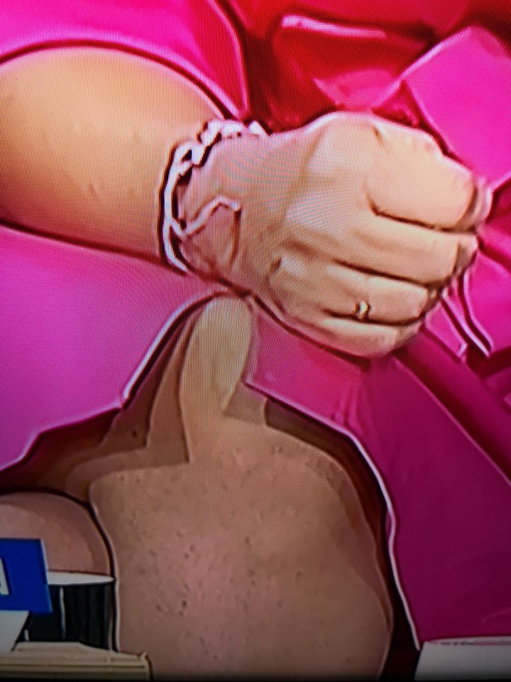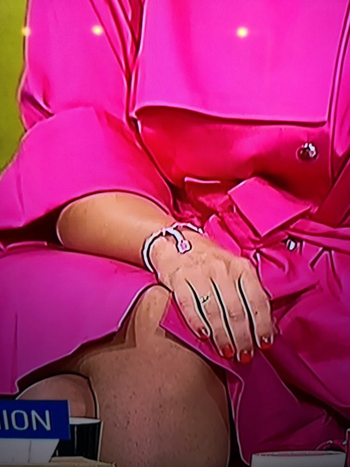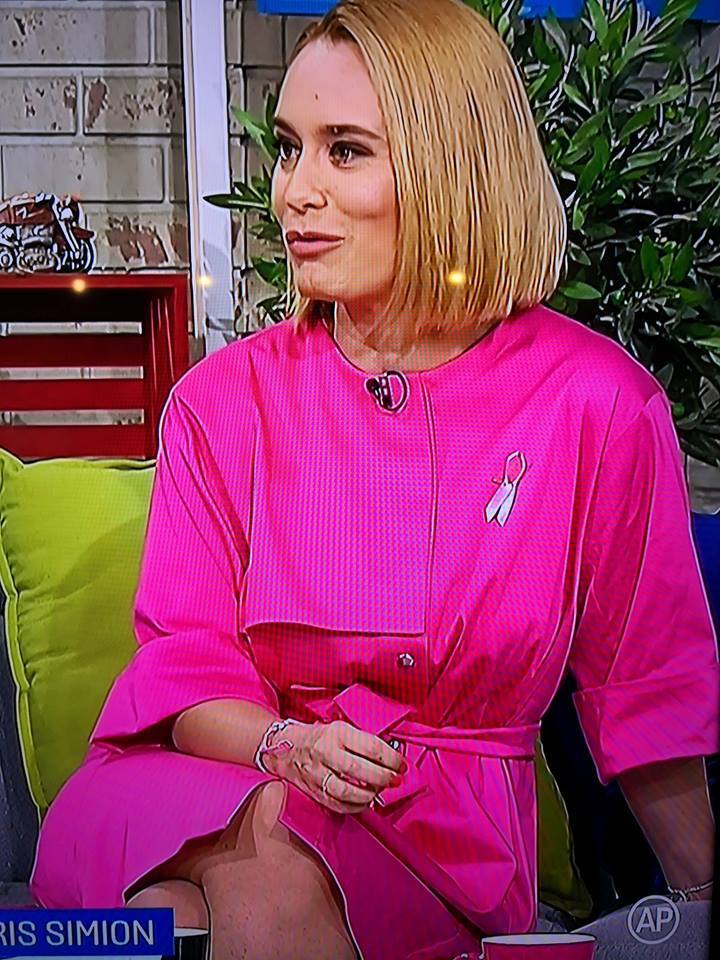 Invitata la o emisiune din trust, stirista a purtat o rochie scurta, fuchsia, iar cand s-a asezat, s-a vazut ca are par pe picioare, imediat sub genunchi.