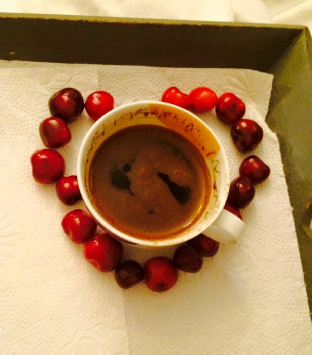 Hmm, combinatia de cafea si cirese pe stomacul „gol” nu e chiar cea mai fericita, insa gestul e unul demn de lauda.