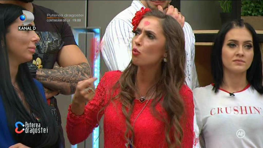 „Ai înțeles ce ți-am spus? Atunci taci! Nu e despre tine, oprește-te! În această casă avem fete care nu sunt ca tine, care își doresc cu adevărat o relație, își doresc să iubească și să plece de aici cu cineva. Nu stiu pentru ce ai venit, nu știu dacă îți dorești să îți găsești pe cineva sau dacă ai devnti la emisiunea care trebuie.