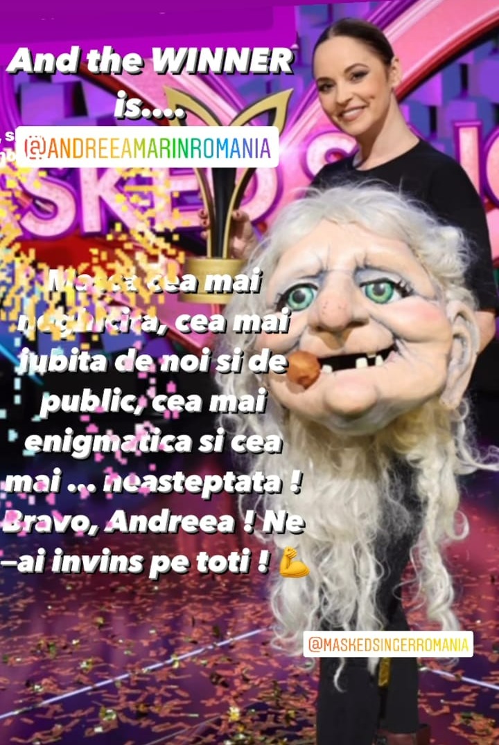 A postat fotografii cu Andreea Marin și chiar a avut numai cuvinte de laudă la adresa ei!„Muma pădurii- un rol greu, o asumare totală și o interpretare impecabilă. Well done, Andreea! Masca cea mai neghicită, cea mai iubită de noi și de public, cea mai enigmatică și mai neașteptată! Bravo, Andreea! Ne-ai învins pe toți”, a scris Mihaela Rădulescu pe contul ei de Instagram.
