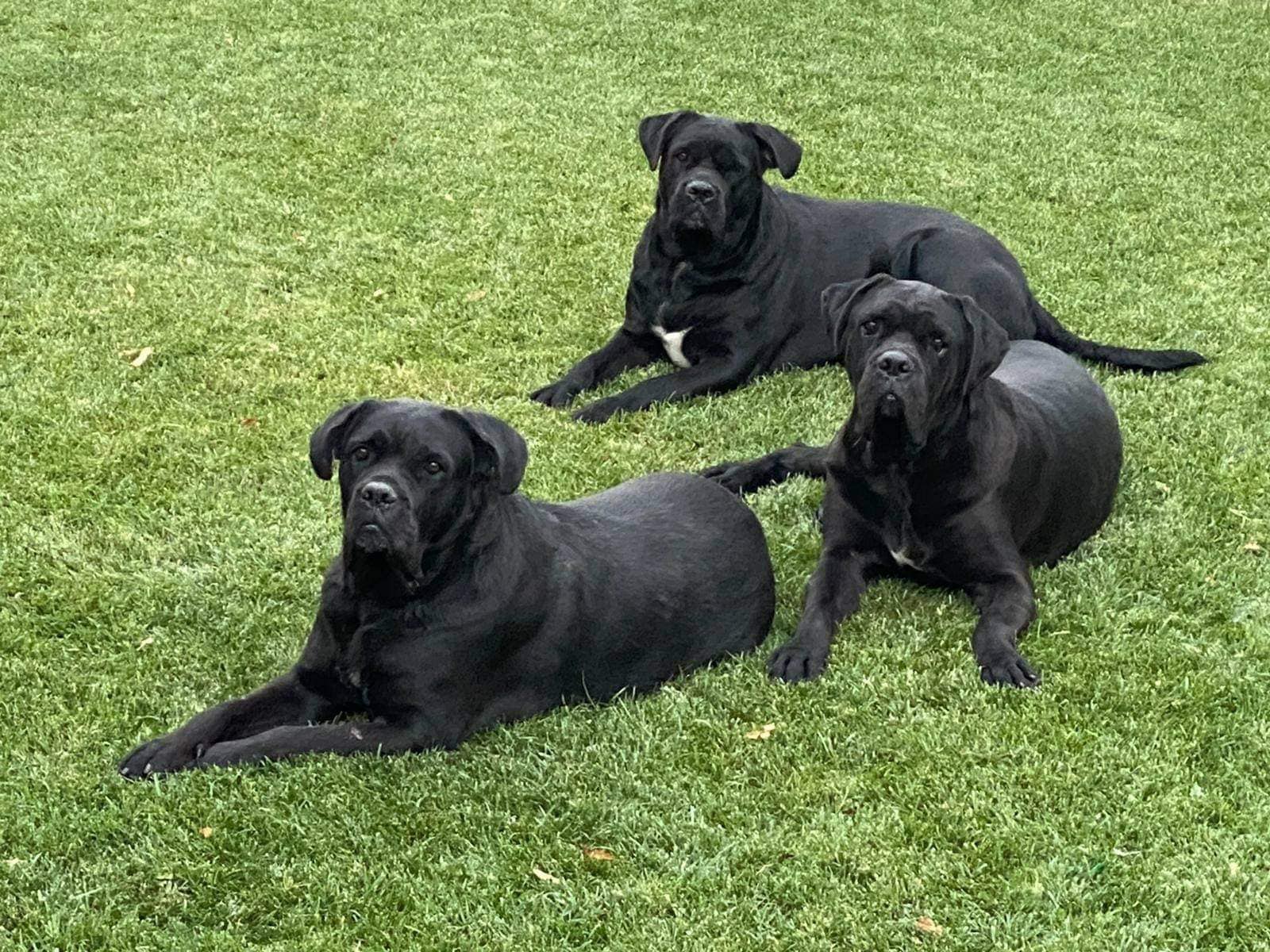 Sunt doi cane corso de culoare neagră, mascul și femelă, bătrâni (8 ani), sterilizați.