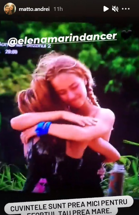 Sper ca mâine să am aceeași energie, îmi doresc să câștig măcar o dată acel totem de imunitate. Mâine mai am o ocazie să mă salvez. Suntem în ultima etapă a competiției și vreau să dau tot ce este mai bun”, a spus Elena Marin.