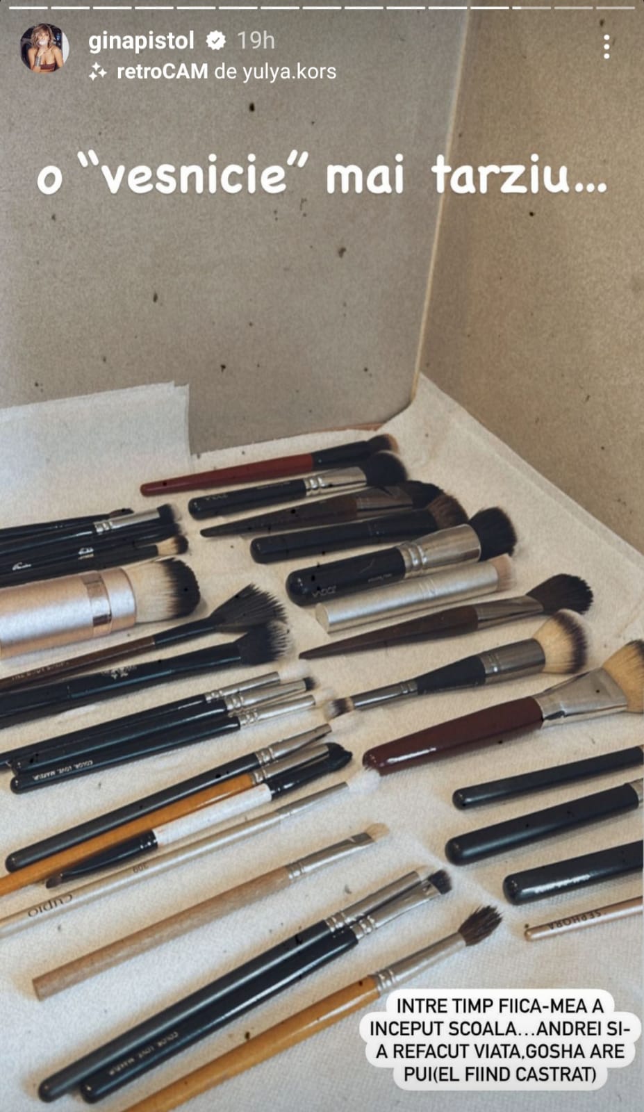 La scurt timp după ce a decis să spună public ce se întâmplă în viața ei, Gina Pistol a revenit la sarcinile pe care le avea de îndeplinit. Vedeta a încercat să facă puțin haz de necaz de situație: „O „veșnicie” mai târziu: Între timp fiică-mea a început școala, Andrei și-a refăcut viața, Gosha (nr. motanul familiei), are pui (el fiind castrat)”, a scris iubita lui Smiley, în dreptul unei fotografii în care le-a arătat fanilor că a terminat în sfârșit curățenia.