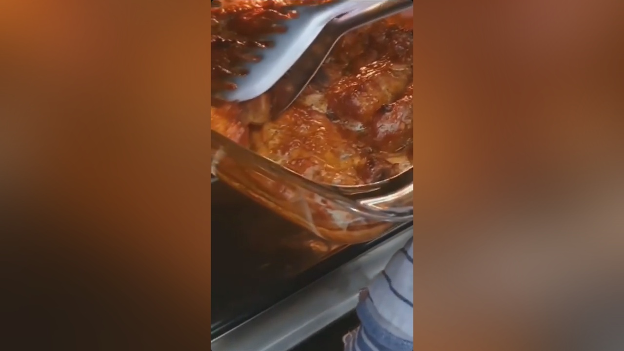 Pentru că da, în caz că nu ați remarcat, există în imaginile de mai sus și o tavă cu coaste pe care Anna le scoate din cuptor. Nu ne dăm seama dacă scopul filmării este să arate cât de bine gătește Anna sau e reclamă la lenjerie intimă. Unghiul ales de ”regizor” este puțin înșelător.