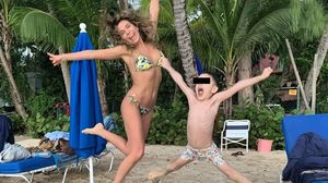 Chiar în aceste clipe, sexy-artista se află într-o vacanță exotică în Caraibe, alături de fiul ei, Adam.