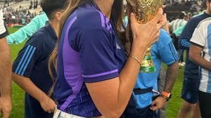 Fericită, imediat după meci, Antonela Roccuzzo, soția superstarului Lionel Messi, a pus o postare pe Instagram cu decarul argentinian sărutând trofeul și în dreptul ei a scris ”Campionul meu!”!