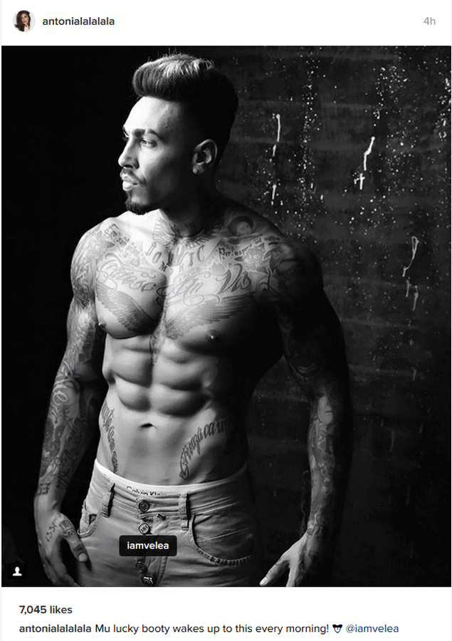 Antonia si-a luat prin surprindere prietenii de pe contul de Instagram dupa ce-a postat o fotografie in care ii lauda barbatia lui Velea. In imagine, artistul apare la bustul gol, iar in zona intima e trecut textul: "iam Velea".