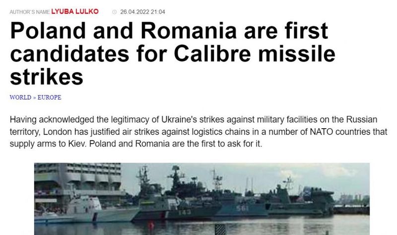 Avertismentul vine chiar de la Moscova, după ce presa de propagandă rusească scrie deja despre un asemenea scenariu apocaliptic. Nu doar România ar fi vizată de atacul cu rachete Kalibr, ci și Polonia, care a avut o implicare la fel de puternică ca a țării noastre.