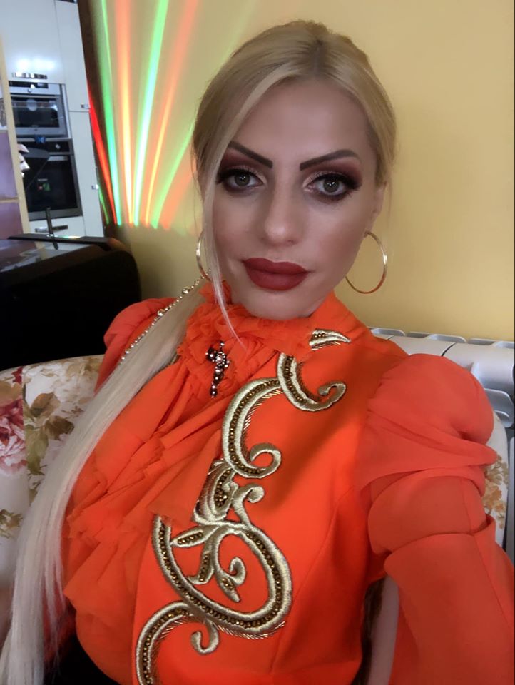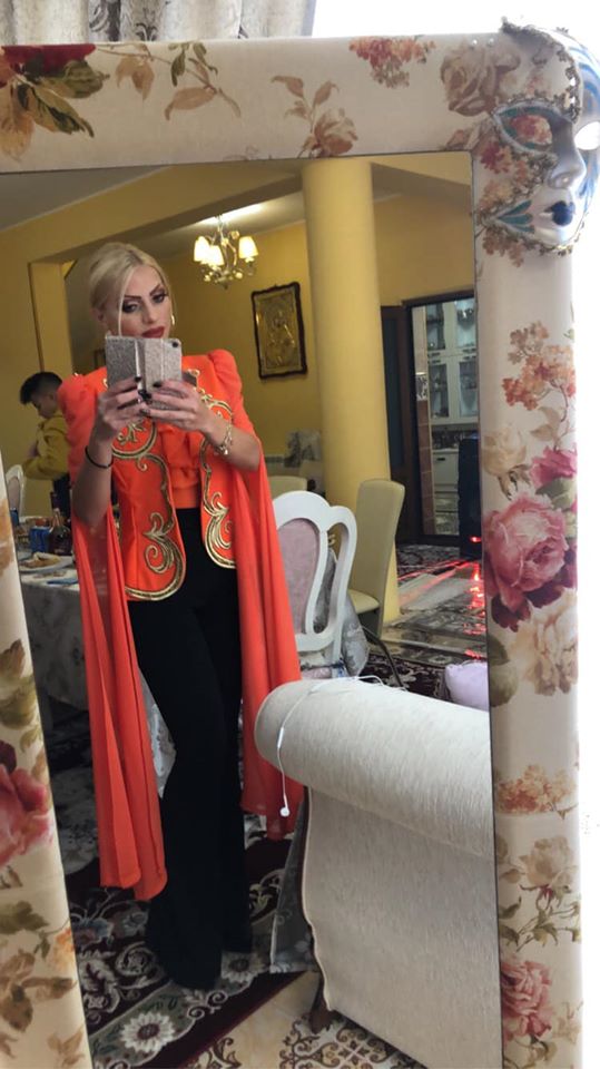 Foarte iubită de maneliști, Nicoleta s-a prezentat la botezul desfășurat în Petroșani cu o rochie portocalie cu motive aurii, bine primită de admiratorii ei virtuali.