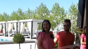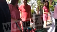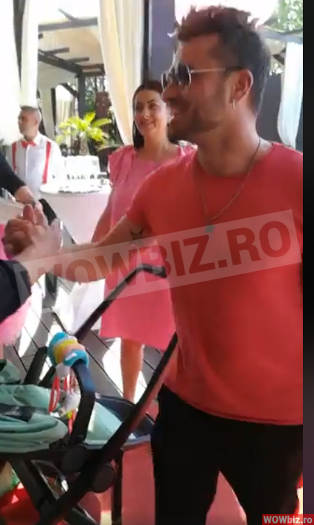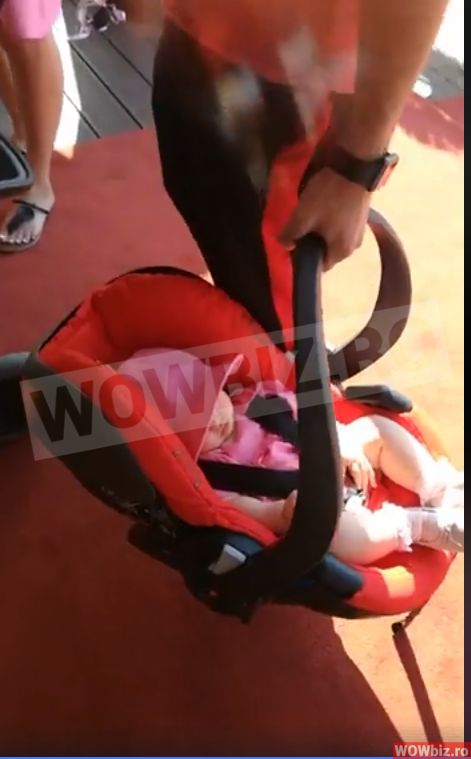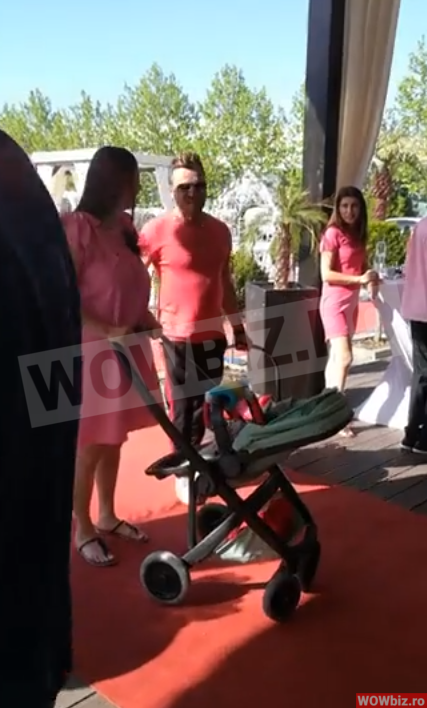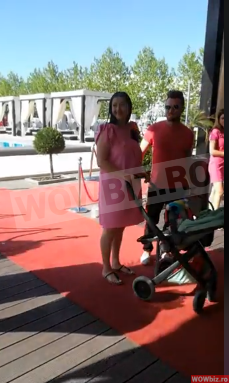 La party, vedeta s-a imbracat intr-o rochita lejera de vara, de culoare roz, la care a asortat o pereche de sandale fara toc, negre! Fiica sa a fost si ea imbracata in aceasi culoare si a stat cumintica in portbebe-ul pe care il tinea Tavi Clonda!