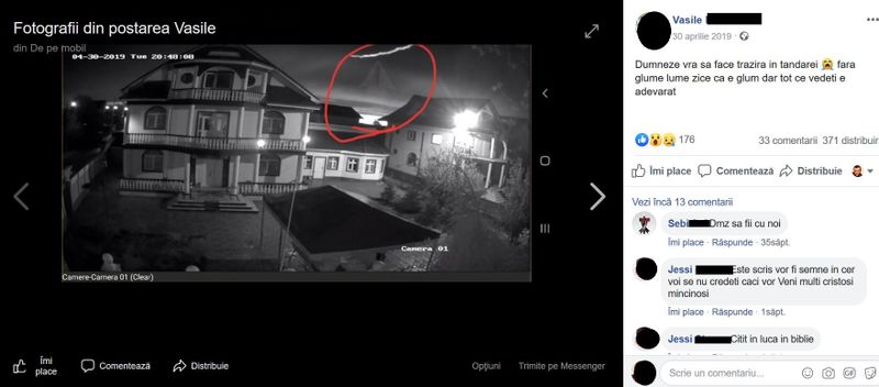 Imaginea respectivă a fost postată de proprietarul unui palat din Țăndărei, de pe una din camere lui de supraveghere. Acesta a postat imediat captura pe contul lui de socializare cu un text al cărui conținut a fost destul de greu de descifrat: ”Dumnezeu vrea să facă trezirea în Țăndărei. Fără glume, lumea zice că e glumă, dar tot ce vedeți este adevăărat”, a scris proprietarul proprietății care a surprins imaginea pe cer.