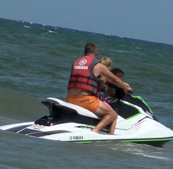 Sidonia si Blejnar au facut cativa pasi in buza apei, apropiindu-se de o zona de sky-jet-uri, care faceau parte din „flota” familiei Tatoiu. Sotia „afaceristului cu elicopter” i-a dat cateva indicatii tehnice lui Blejnar, iar acesta si-a luat baietelul si au incalecat „bombardierul” nautic pentru o plimbare de aproximativ jumatate de ora.