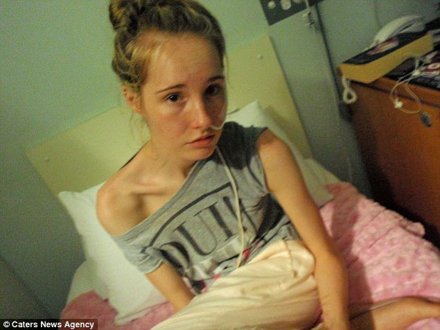 Numele ei este Gemma Walker, are 14 ani si a fost diagniosticata cu anorexie nervoasa si bulimie. A fost internata in spital de trei ori pana acum si i s-a spus ca fara un tratament de specialitate va muri in 48 de ore.