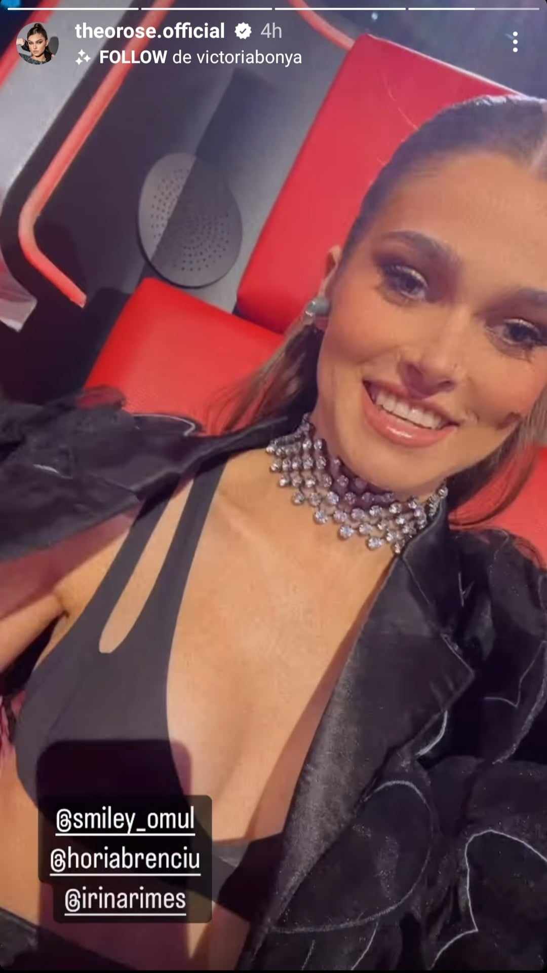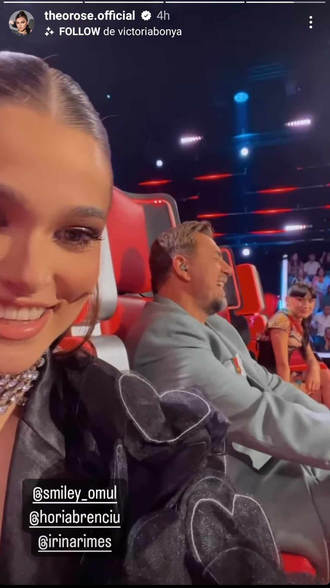 Recent, Theo Rose a distribuit pe InstaStory un filmuleț în care voia să arate ținuta purtată în cadrul emisiunii, însă Smiley a făcut o remarcă amuzantă. Mai precis, i-a spus vedetei să-și arate decolteul. Artista nu s-a simțit deranjată, ba chiar a continuat gluma.