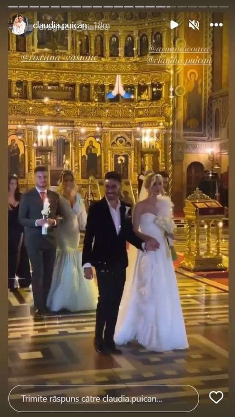 Claudia Puican a purtat o rochie albă, simplă, dar care s-a mulat perfect pe corpul ei. A fost făcută la un designer român, pentru care a plătit 10.000 de lei. Și sandalele pe care le-a încălțat au costat-o nu mai puțin de 700 de lei.