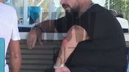 De această dată, Piedone a ales o ținută all black și accesoriile sunt adevărate piese de lux. Dacă judecăm după semnul de pe tricou, am putea spune că nici piesele de îmbrăcăminte nu sunt prea departe, însă papucii sunt cei care ne-au atras atenția.