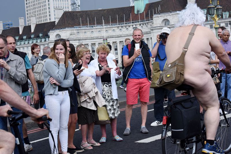 Strazile Londrei au fost invadate de goliciune. Mai multi biciclisti au renuntat total la haine si s-au urcat pe biciclete fara niciun pic de jena. Si-au etalat partile intime asa cum le-a lasat mama natura, in toata splendoarea.