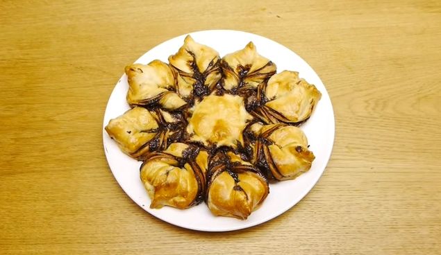 Desi pare greu de facut, este gata in doar cateva minute. Ai nevoie de aluat de paine, pizza sau cozonac, de apa si crema de ciocolata.